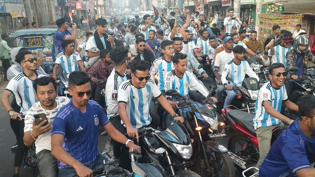 কাতার বিশ্বকাপ ফুটবলের ফাইনাল ম্যাচ আর মাত্র কয়েকঘণ্টা পর। এই বিশ্বকাপে আর্জেন্টিনা ফাইনালে অংশ নেওয়ায় স্বাগত জানিয়ে মৌলভীবাজারে মিছিল করেছে আর্জেন্টিনা সমর্থকরা।