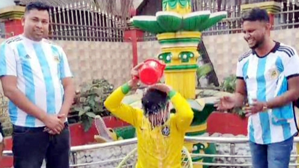 বিশ্বকাপে পছন্দের দল ব্রাজিল ভালো খেলতে না পারায় এবং মেসির খেলায় মুগ্ধ হয়ে ব্রাজিল ছেড়ে আর্জেন্টিনার সমর্থক হলেন জুয়েল রানা (৪৫) নামে এক ব্যক্তি। এমনকি দল পরিবর্তনের আগে দুধ দিয়ে গোসলও করেন তিনি।