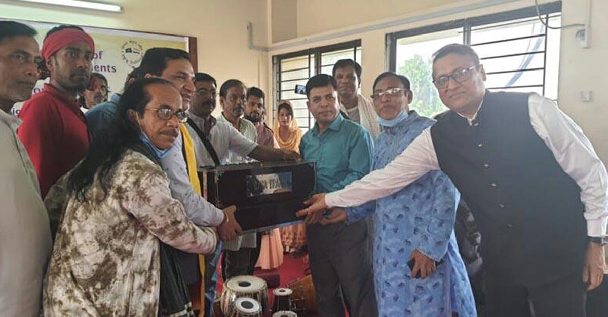 কুমারখালীর ছেউড়িয়ায় লালন একাডেমিতে শিল্পীদের মাঝে বাদ্যযন্ত্র বিতরণ
