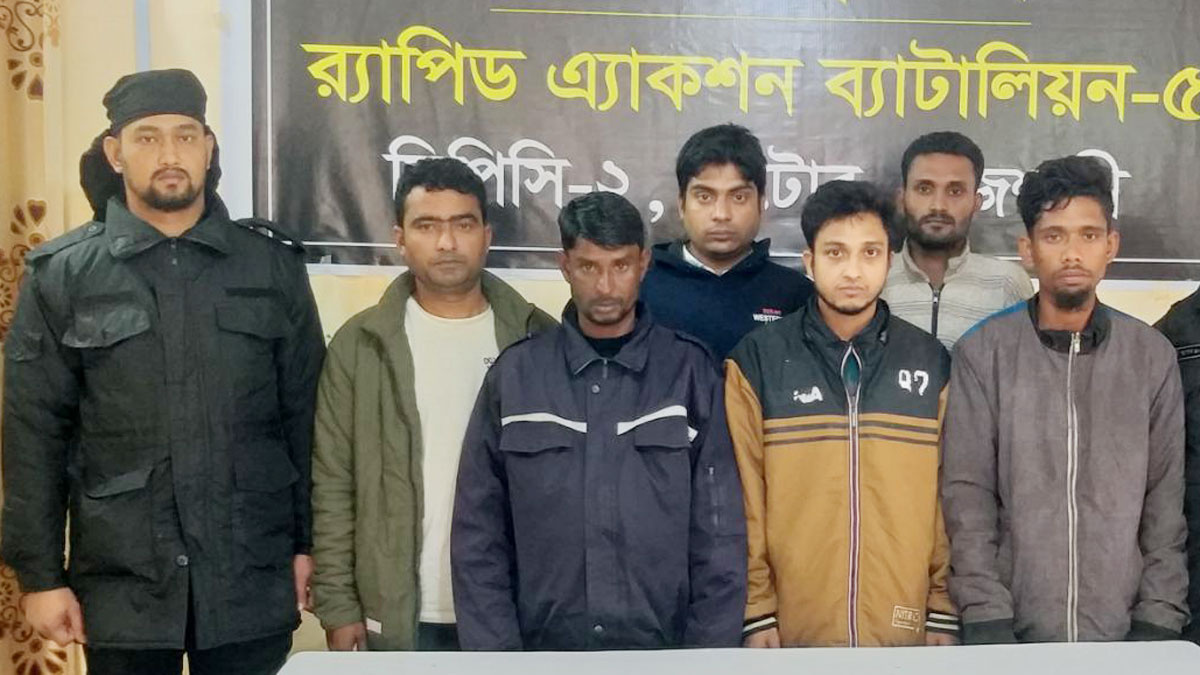 আটককৃতরা হলেন- উপজেলার খাগরবাড়িয়া গ্রামের মৃত তারা খাঁর ছেলে মো. রাজন আলী ওরফে রাজন খাঁ (৩৪), মৃত রফিক মিয়ার ছেলে মো. আব্দুল মালেক (৩৬), দক্ষিণ দমদমা গ্রামের মো. শহিদুল ইসলামের ছেলে মো. বিল্পব হোসেন (২৭), চওড়া গ্রামের মো. আবু তালহার ছেলে মো. সেলিম হোসেন (২০), কয়াখাস গ্রামের আব্দুল সোবহানের ছেলে মো. আব্দুল রশিদ (২৪) ও বামিহাল বাজারপাড়া গ্রামের মফিজ উদ্দিনের ছেলে মো. রাসেল (২৬)।