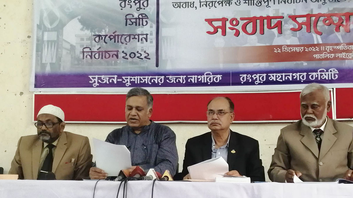 এদিকে, প্রার্থীদের হলফনামার তথ্য তুলে ধরার পাশাপাশি সংবাদ সম্মেলন থেকে রংপুর সিটিতে অবাধ, নিরপেক্ষ ও শান্তিপূর্ণ নির্বাচন অনুষ্ঠানের আহ্বান জানানো হয়। এজন্য নির্বাচন কমিশন, সরকার, নির্বাচন সংশ্লিষ্ট কর্মকর্তা-কর্মচারী, আইনশৃঙ্খলা রক্ষাকারী বাহিনীসহ গণমাধ্যমের কর্মীদেরকে নিরপেক্ষতার সঙ্গে দায়িত্ব পালনের আহ্বান জানান সুজনের কেন্দ্রীয় সমন্বয়কারী দিলীপ কুমার সরকার।