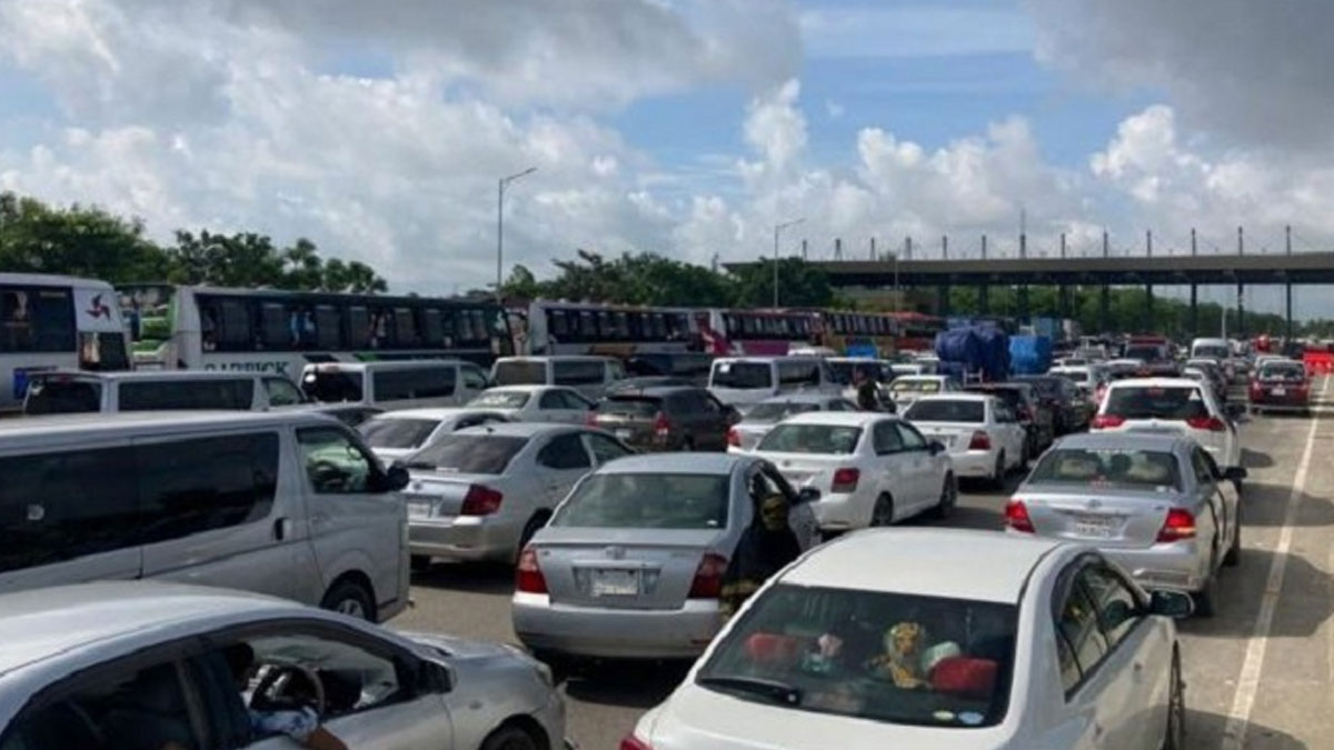 পদ্মা সেতুর মুন্সীগঞ্জ প্রান্তে যানবাহনের চাপ বেড়েছে। সেতুর টোল প্লাজা থেকে দুই কিলোমিটার এলাকাজুড়ে যানবাহনের দীর্ঘ সারি লক্ষ করা গেছে।