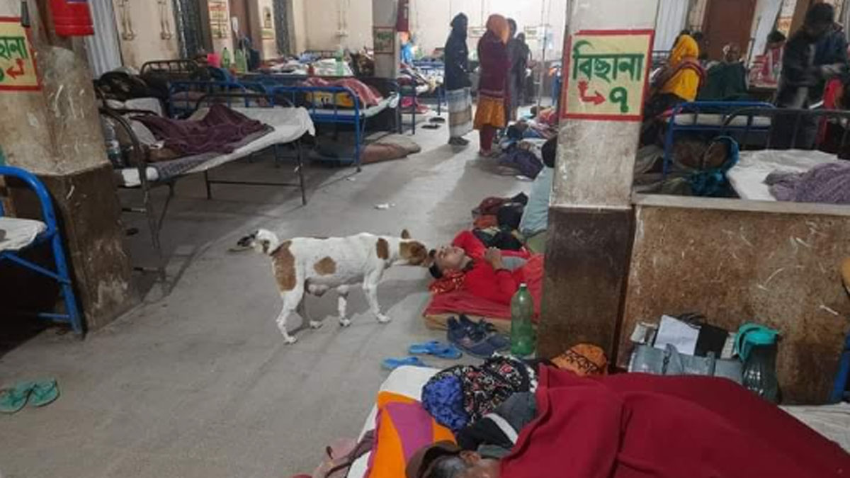 হাসপাতালে ওয়ার্ডের ভেতর রোগীর গা ঘেঁষে ঘুরছে কুকুর, দেখার কেউ নেই