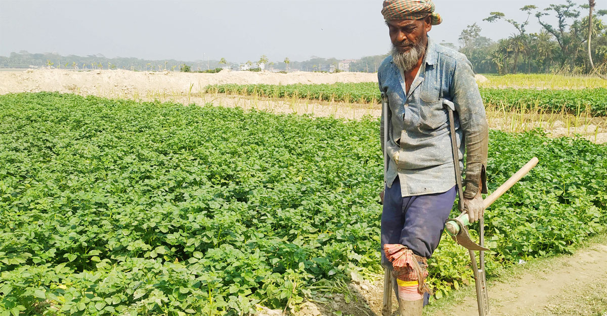 ছেলে জাকির হোসেন বলেন, ১২ বছর আগে জমিতে কাজ করতে গিয়ে বাবার পায়ে সমস্যা দেখা দেয়। চিকিৎসা করাতে গিয়ে অনেক টাকা খরচ হয়েছে। কিন্তু পা দুটি রক্ষা হয়নি। এখন দুই পা ছাড়াই কৃষিকাজ করছেন। সংসারে বাবার পাশাপাশি আমরাও চেষ্টা করি বিভিন্নভাবে সাহায্য করতে।