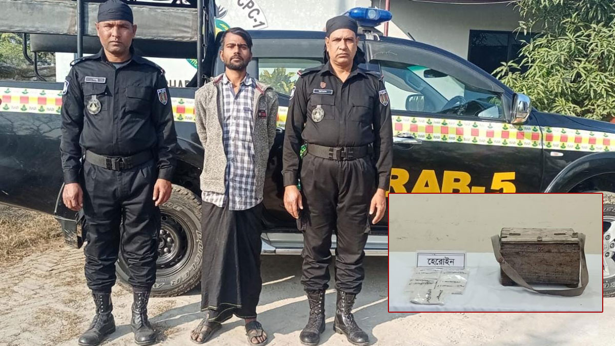 র্যাব জানায়, র্যাব-৫ সিপিসি-১ চাঁপাইনবাবগঞ্জ ক্যাম্পের একটি দল অপারেশন দল গোদাগাড়ী উপজেলার সিঅ্যান্ডবি মোড়ে ব্র্যাক অফিসের সামনে থেকে এসব হেরোইন জব্দ করে। অভিযানে নেতৃত্ব দেন কোম্পানি অধিনায়ক লে. কমান্ডার রুহ-ফি-তাহমিন তৌকির এবং কোম্পানি উপ-অধিনায়ক সহকারী পুলিশ সুপার মো. আমিনুল ইসলাম। ৫১০ গ্রাম হেরোইন ছাড়াও একটি কাঠের বাক্স উদ্ধার করা হয়েছে।