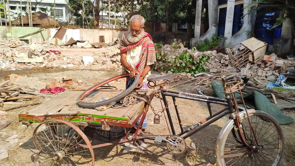 ‘মোর পরিবারের ছয়জন সদস্য। এই ভ্যানডার উফরে (আয়ে) হগলডি চলে। পরশু রাইতে নাহইল (নারিকেল) গাছের তলায় থুইয়া গেছি; বেইন্যাহালে (সকালে) আইয়্যা দেহি ভাঙা। এহনতো মোর সংসার চালাইন্যা কোনো উপায় নাই।’ বৃহস্পতিবার (১২ জানুয়ারি) সকালে ভেঙে ফেলা বরিশাল মোহামেডান স্পোটিং ক্লাবের সামনে দাঁড়িয়ে এসব কথাই জানাচ্ছিলেন হামেদ মোল্লা।