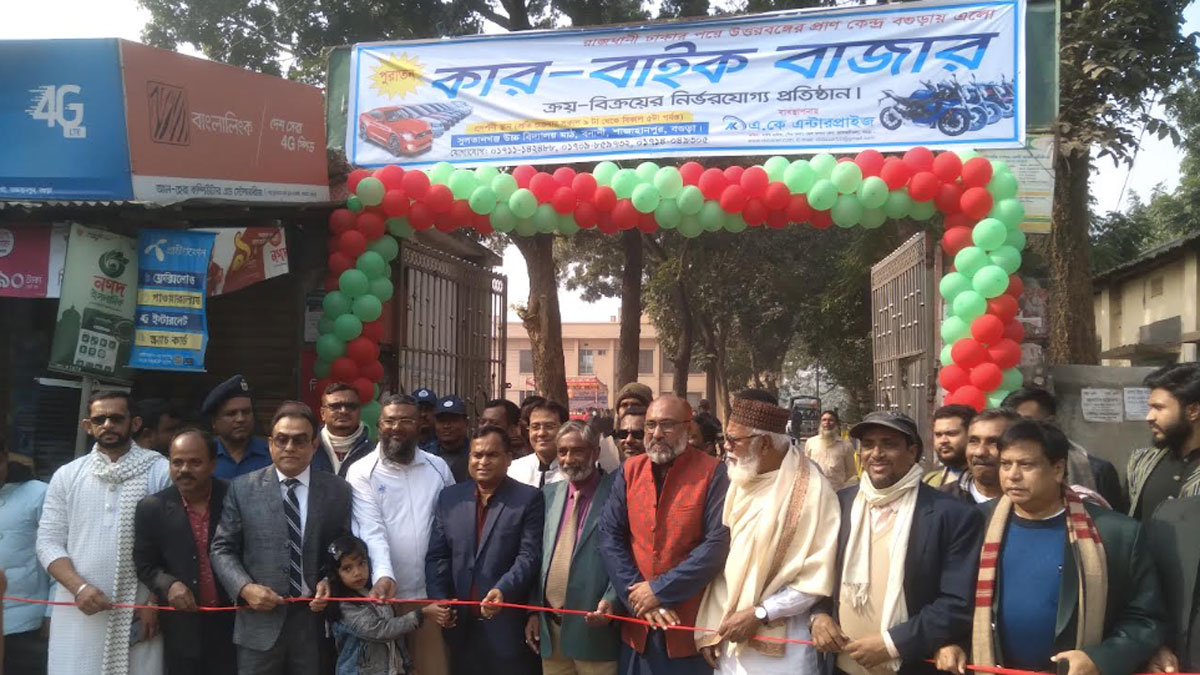 রাজধানী ঢাকার পর এবার বগুড়ায় প্রথমবারের মতো কার বাইক বাজার বসেছে। এ কে এন্টারপ্রাইজের ব্যবস্থাপনায় শুক্রবার সকালে শহরের বানানী সুলতানগঞ্জ হাইস্কুল মাঠে শুভ উদ্বোধন করা হয়েছে। ফিতা ও বেলুন উড়িয়ে এ বাজারের উদ্বোধন করেন প্রধান অতিথি বগুড়া অতিরিক্ত পুলিশ সুপার (ডিএসবি) আবদুর রশিদ।