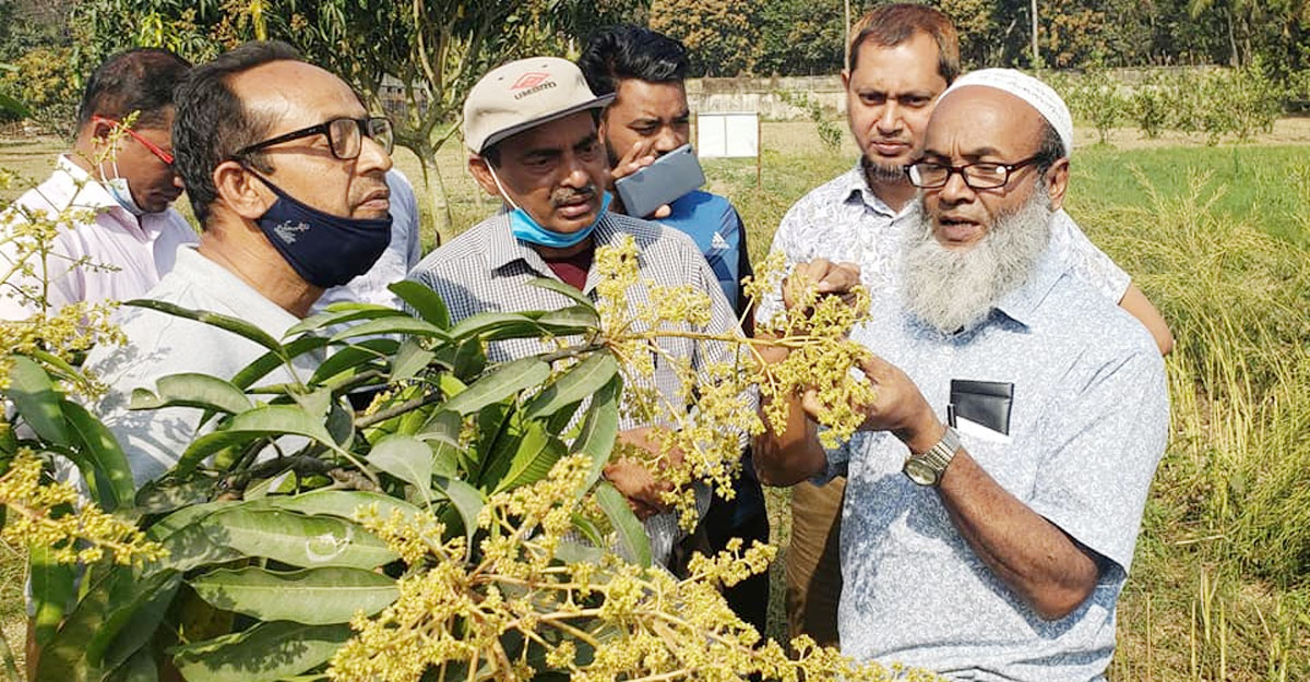 আমের মুকুলে বারি-৪ আমের গবেষণা চলছে