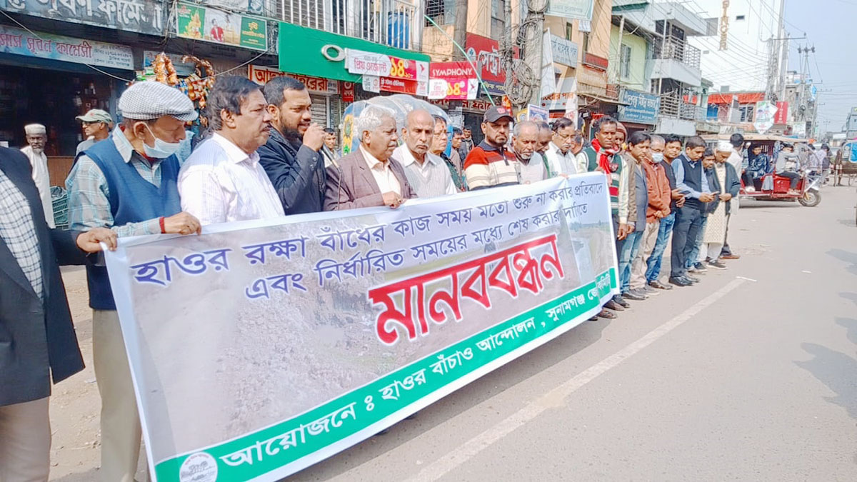 মানববন্ধনে হাওর বাঁচাও আন্দোলনের কেন্দ্রীয় কমিটির সাধারণ সম্পাদক বিজন সেন রায় বলেন, হাওরে বাঁধ নির্মাণের সময় এলেই পাউবো ও প্রশাসনের কর্মকর্তাদের মধ্যে উৎসব তৈরি হয়। তারা অপেক্ষা করতে থাকেন কখন এই সময় আসবে। সঠিকভাবে কাজ না করে হাওরের কোটি কোটি টাকা লুটপাট করে সুনামগঞ্জ থেকে চলে যায়। তারা আমাদের কৃষকের দুঃখ, কষ্টের কথা চিন্তা করেন না। তারা তাদের পকেট ভারী করার চিন্তা করেন। এবার এই কোটি কোটি টাকা লুটপাটের চেষ্টা করলে হাওর বাঁচাও আন্দোলন সুনামগঞ্জের সাংবাদিক ও গণমানুষকে নিয়ে এর দাঁতভাঙা জবাব দেবে।