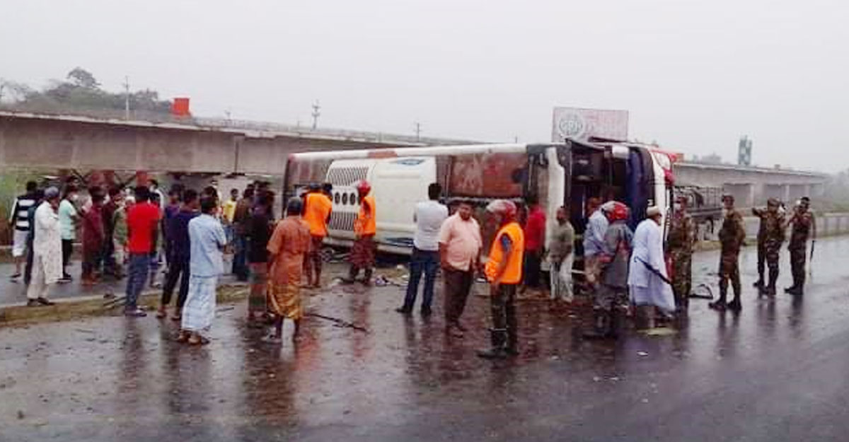 ঢাকা-মাওয়া এক্সপ্রেসওয়েতে উল্টে গেল যাত্রীবাহী বাস