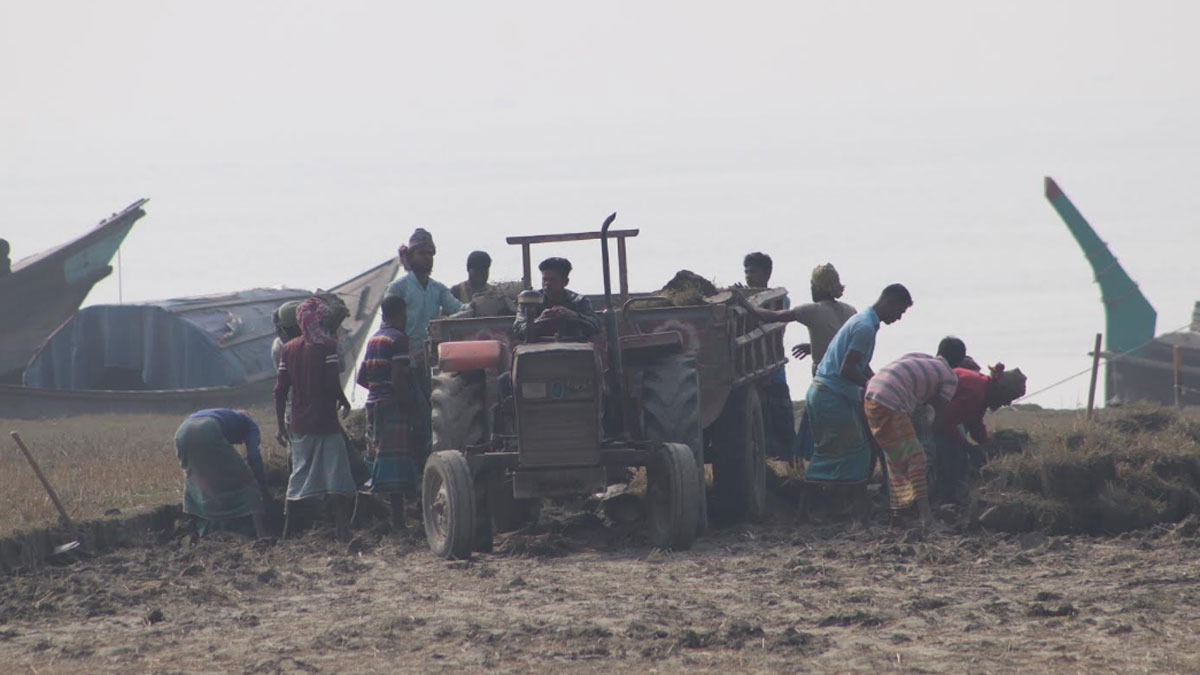 ট্রাক্টরে মাটি নিয়ে যাচ্ছে শ্রমিকেরা