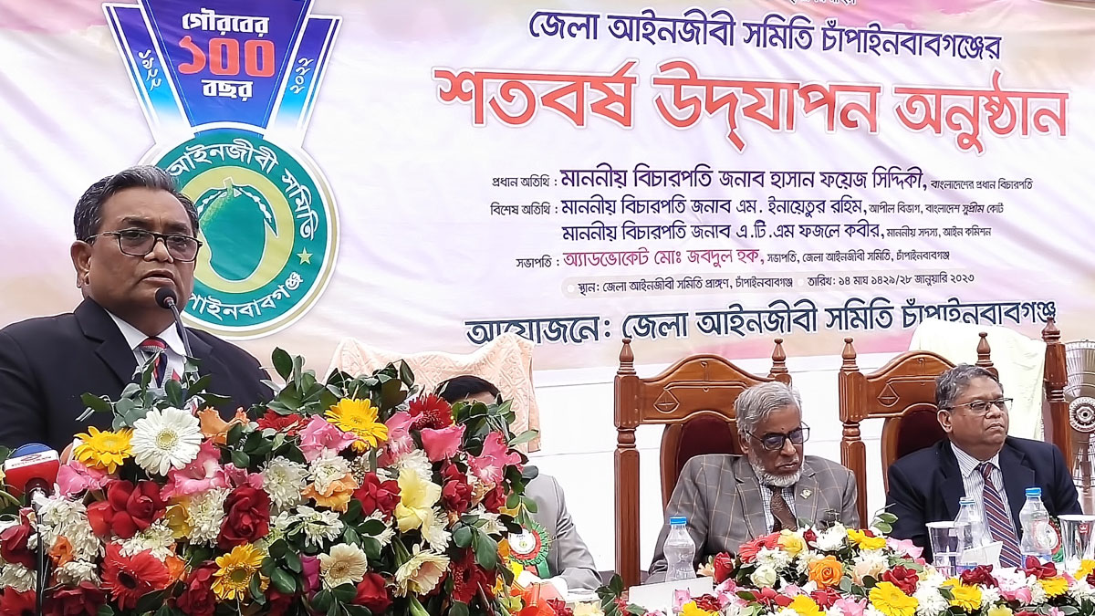 শনিবার (২৮ জানুয়ারি) দুপুরে চাঁপাইনবাবগঞ্জ আদালত চত্বরে জেলা আইনজীবী সমিতির শতবর্ষ উদযাপন অনুষ্ঠানে প্রধান অতিথির বক্তব্য তিনি এসব কথা বলেন।