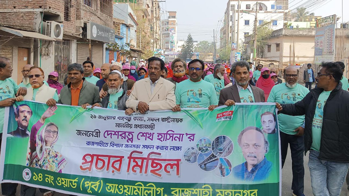 জানা গেছে, বিভাগের বিভিন্ন জেলা থেকে নেতাকর্মীরা ট্রেন বা বাস যোগে রাজশাহীতে আসছেন। তারা রাজশাহী রেলস্টেশন বাস টার্মিনালের নেমে ব্যানার ফেস্টুন নিয়ে সমাবেশস্থলের দিকে এগোচ্ছেন। নেতাকর্মীদের একত্রিত হয়ে আসায় খণ্ড খণ্ড মিছিল তৈরি হচ্ছে। মিছিলের ব্যানার ফেস্টুনগুলোতে প্রধানমন্ত্রী শেখ হাসিনার বিভিন্ন উন্নয়নের চিত্র ফুটে উঠেছে।