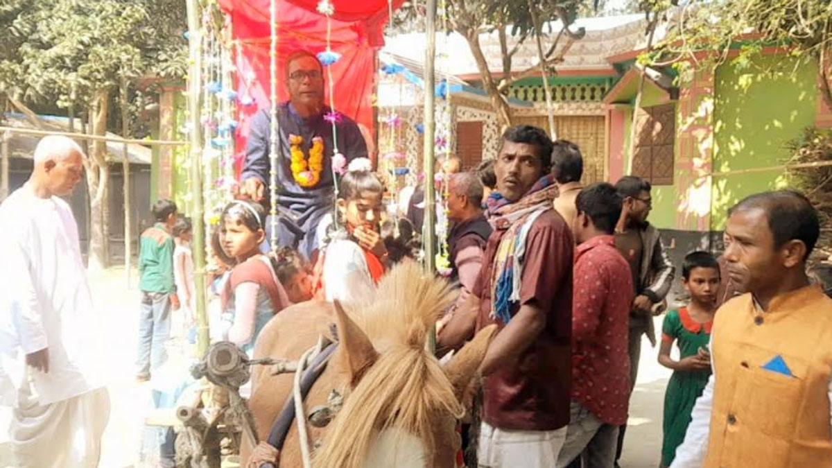 ঘোড়ার গাড়িতে শিক্ষকের বিদায়ী সংবর্ধনা