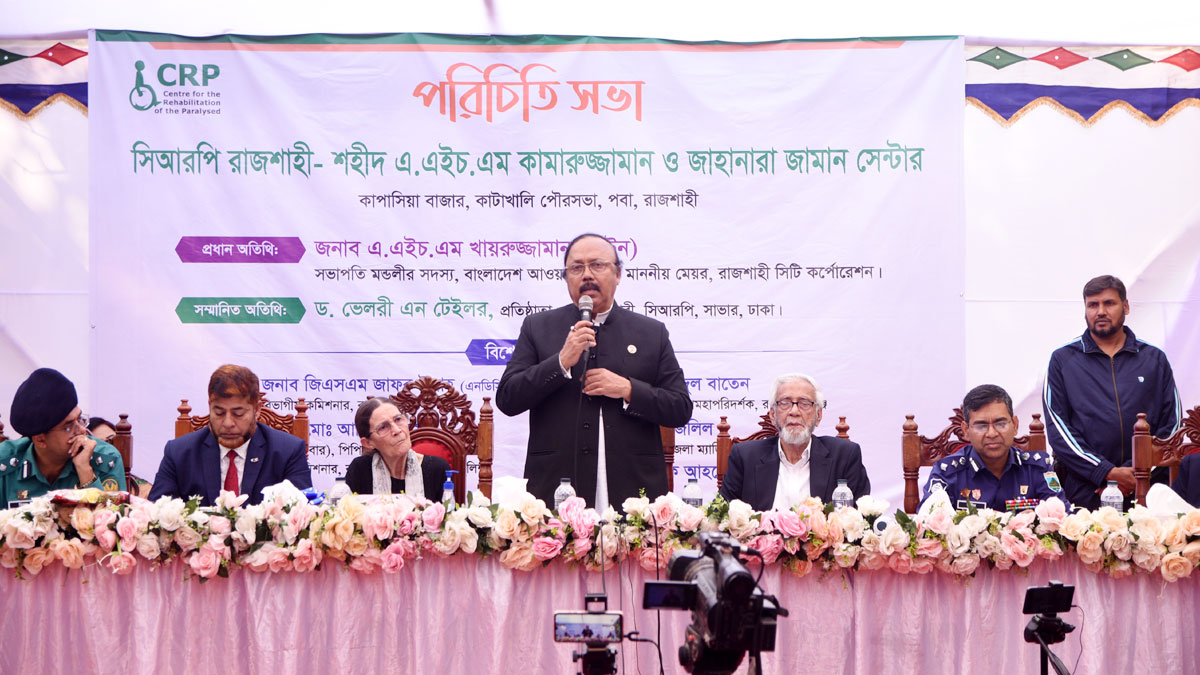 সভায় সম্মানিত অতিথি ছিলেন সিআরপি’র প্রতিষ্ঠাতা ও সমন্বয়কারী ড. ভেলরী এন টেইলর। তিনি বলেন, সিআরপিকে মূল্যবান ৫ একর জমি দানের মহতি উদ্যোগ নেওয়ার জন্য মেয়র এএইচএম খায়রুজ্জামান লিটন ও তার পরিবারকে সিআরপি’র পক্ষ থেকে আন্তরিক ধন্যবাদ ও কৃতজ্ঞতা জানাই। সিআরপি-রাজশাহী শহীদ এএইচএম কামারুজ্জামান ও জাহানারা জামান সেন্টার’ হবে আঞ্চলিক পুনর্বাসন কেন্দ্র। মেরুরজ্জুতে আঘাতপ্রাপ্ত ব্যক্তিরা এখানে পরিপূর্ণ পুনর্বাসন সেবা গ্রহণ করতে পারবেন। এখানে কৃত্রিম অঙ্গ তৈরি ও সংযোজন, হুইলচেয়ার ও অন্যান্য সহায়ক সামগ্রী তৈরি করা হবে। এটি প্রতিষ্ঠার ফলে সাভারে সদর দপ্তরের ওপর চাপ কমে যাবে।