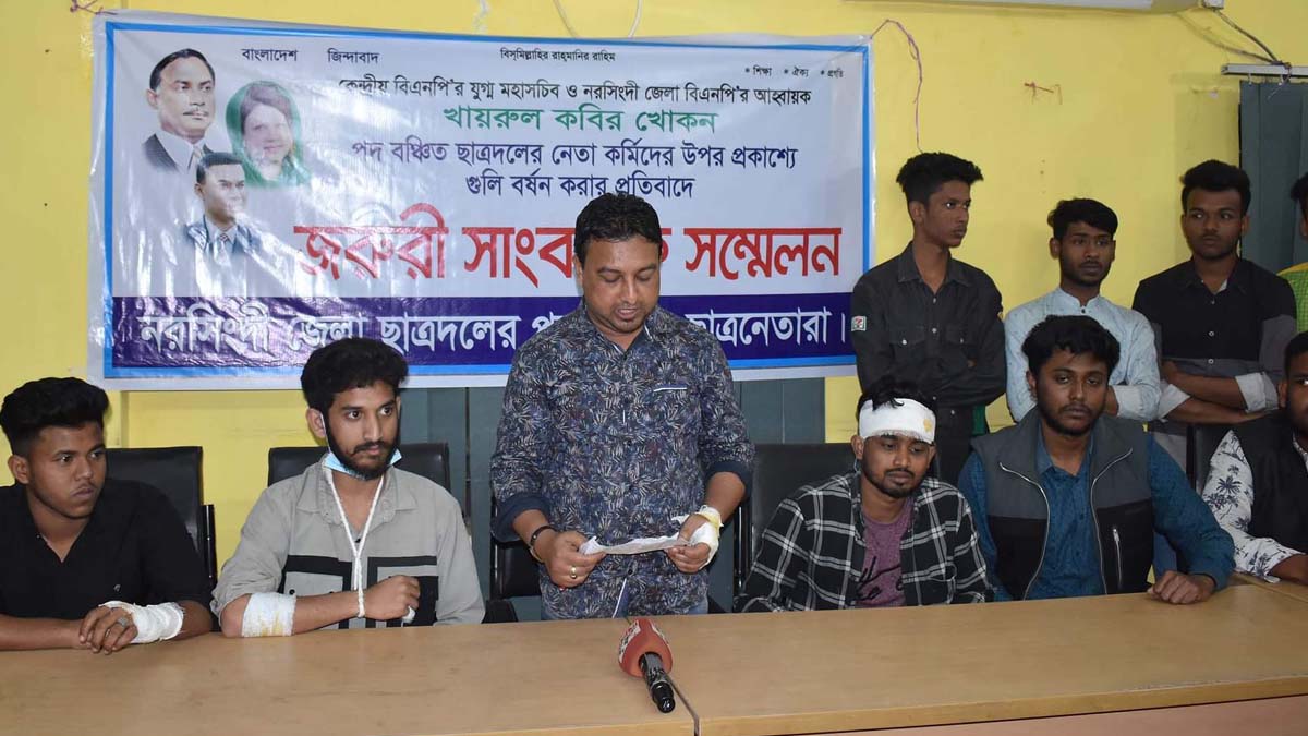 নরসিংদী সরকারি কলেজের ছাত্রদল নেতা মাইদুল নিহাত সংবাদ সম্মেলনে বলেছেন, ‘আজ (শনিবার) সকালে রায়পুরা উপজেলা বিএনপির সভাপতি এ্যাড. একেএম নেছার উদ্দিনের জানাযায় যাওয়ার জন্য আমরা ৮-১০জন রায়পুরার উদ্দেশ্য রওনা হয়েছিলাম। পথিমধ্যে আমাদের গাড়ির গ্যাসের প্রয়োজন হয়। পরে জেলার শিবপুর উপজেলার ঢাকা-সিলেট মহাসড়কের পাশে একটি পাম্পে গাড়িতে গ্যাস নেওয়ার জন্য দাঁড়ালে ৪০-৫০ জন আমাদের ওপর অতর্কিত হামলা চালায়। আমরা তাদের প্রতিহত করতে গেলে কেন্দ্রীয় বিএনপির যুগ্ম মহাসচিব ও জেলা বিএনপির আহ্বায়ক খায়রুল কবির খোকন আমাদের উদ্দেশ্য করে গুলি ছোড়েন। আমরা ছাত্রদলের রাজনীতি করি এমনিতেই কত নির্যাতনের স্বীকার হই, তিনি আমাদের জেলা বিএনপির অভিভাবক, তিনি আমাদের আগলে রাখার কথা, তিনিই আমাদের ওপর গুলি বর্ষণ করেছেন। এর থেকে দুঃখের বিষয় আর কী হতে পারে?’