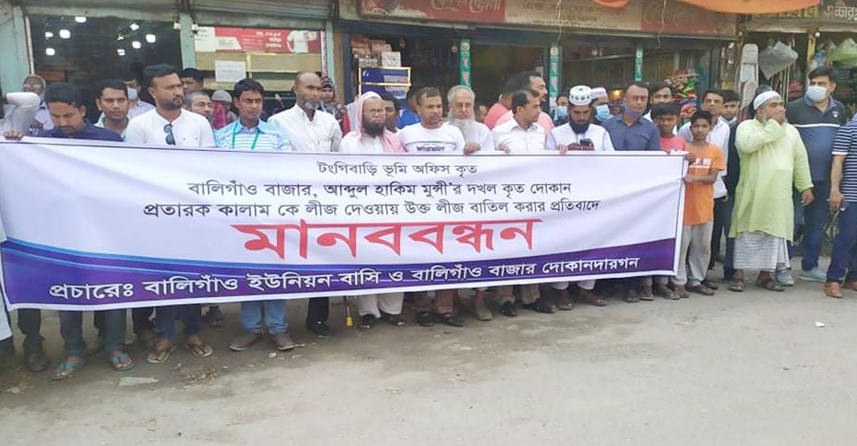 মুন্সিগঞ্জে মালিকের দোকান ভাড়াটিয়া নিজের নামে করে নেওয়ার প্রতিবাদে মানববন্ধন