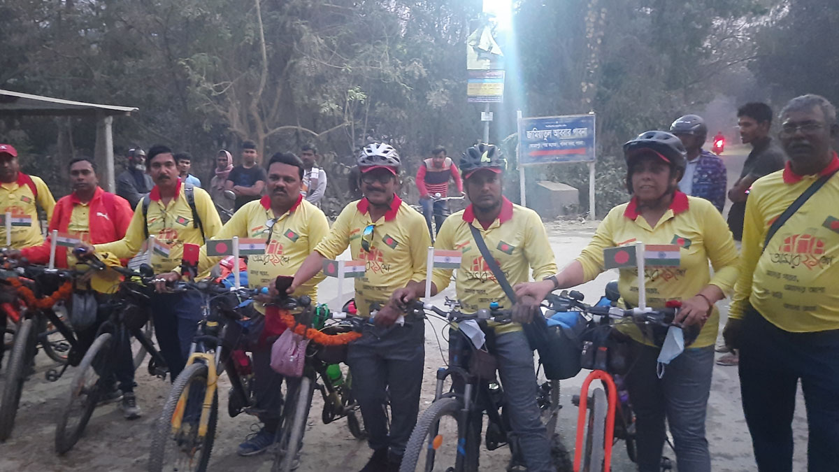 বাংলা ভাষার প্রতি শ্রদ্ধা ও ভালোবাসা জানাতে বাংলাদেশে এসেছেন ৮ ভারতীয় নাগরিক। ভারতের পশ্চিমবঙ্গ থেকে বাইসাইকেল চালিয়ে এসে তারা শুক্রবার (১৭ ফেব্রুয়ারি) পাবনা জেলায় অবস্থান করেছেন। এবারের আন্তর্জাতিক মাতৃভাষা দিবস ও শহীদ দিবস উপলক্ষে গত ১৪ ফেব্রুয়ারি (মঙ্গলবার) বাংলাদেশের উদ্দেশ্যে রওনা হন তারা।