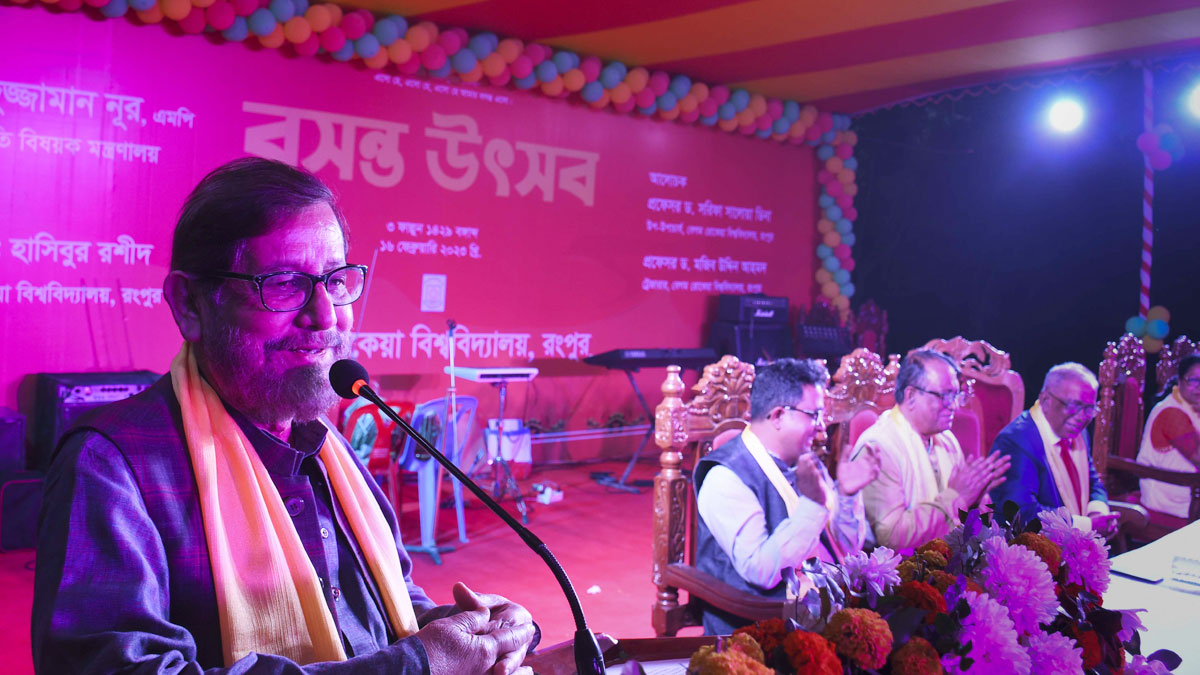 শুক্রবার (১৭ ফেব্রুয়ারি) বিকেলে বেগম রোকেয়া বিশ্ববিদ্যালয় উদ্যোগে বসন্ত উৎসব উদযাপন অনুষ্ঠানে প্রধান অতিথির বক্তব্যে সাবেক সংস্কৃতিমন্ত্রী আসাদুজ্জামান নূর এসব কথা বলেন।