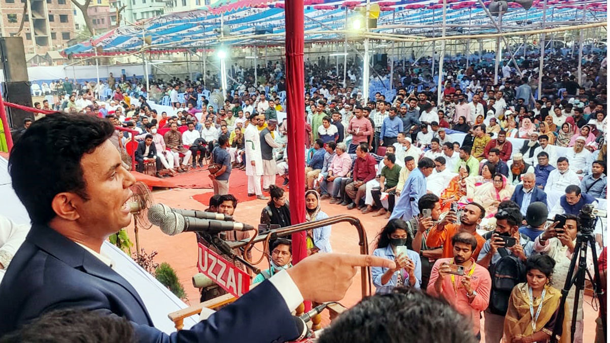 নারায়ণগঞ্জ মহানগর ছাত্রলীগের বিশেষ কর্মীসভায় বক্তব্য রাখছেন কেন্দ্রীয় ছাত্রলীগের সভাপতি সাদ্দাম হোসেন/ ঢাকা পোস্ট