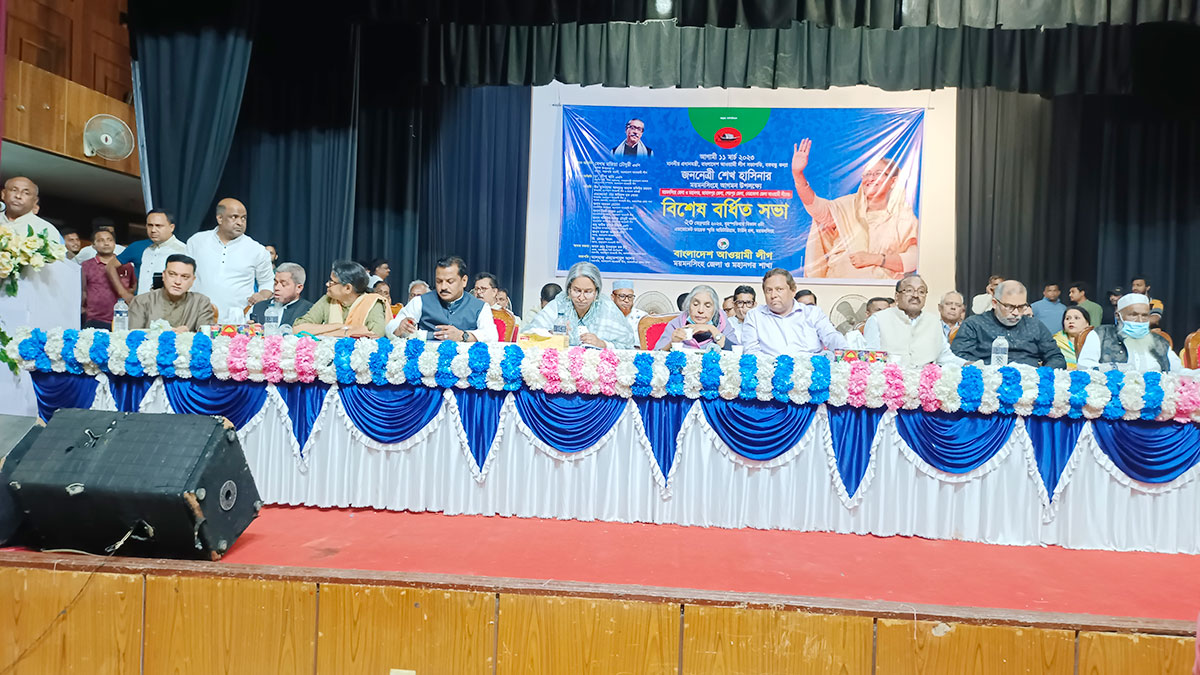 বৃহস্পতিবার (২৩ ফেব্রুয়ারি) বিকেলে নগরীর টাউন হলের অ্যাডভোকেট তারেক স্মৃতি মিলনায়তনে আয়োজিত এ বিশেষ বর্ধিত সভায় ময়মনসিংহ জেলা ও মহানগর, জামালপুর, নেত্রকোনা ও শেরপুর জেলা আওয়ামী লীগের নেতার অংশ নেন। দলীয় নেতারা ছাড়াও জেলা ও উপজেলাগুলো থেকে সংসদ সদস্য, উপজেলা পরিষদের চেয়ারম্যান ও মেয়ররা অংশ নেন।