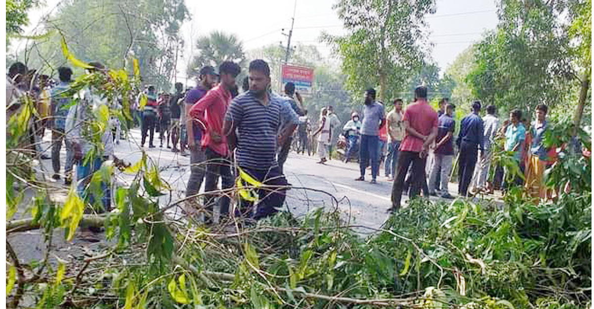 দুর্ঘটনার পর সড়ক অবরোধ করেছে বিক্ষুব্ধ এলাকাবাসী