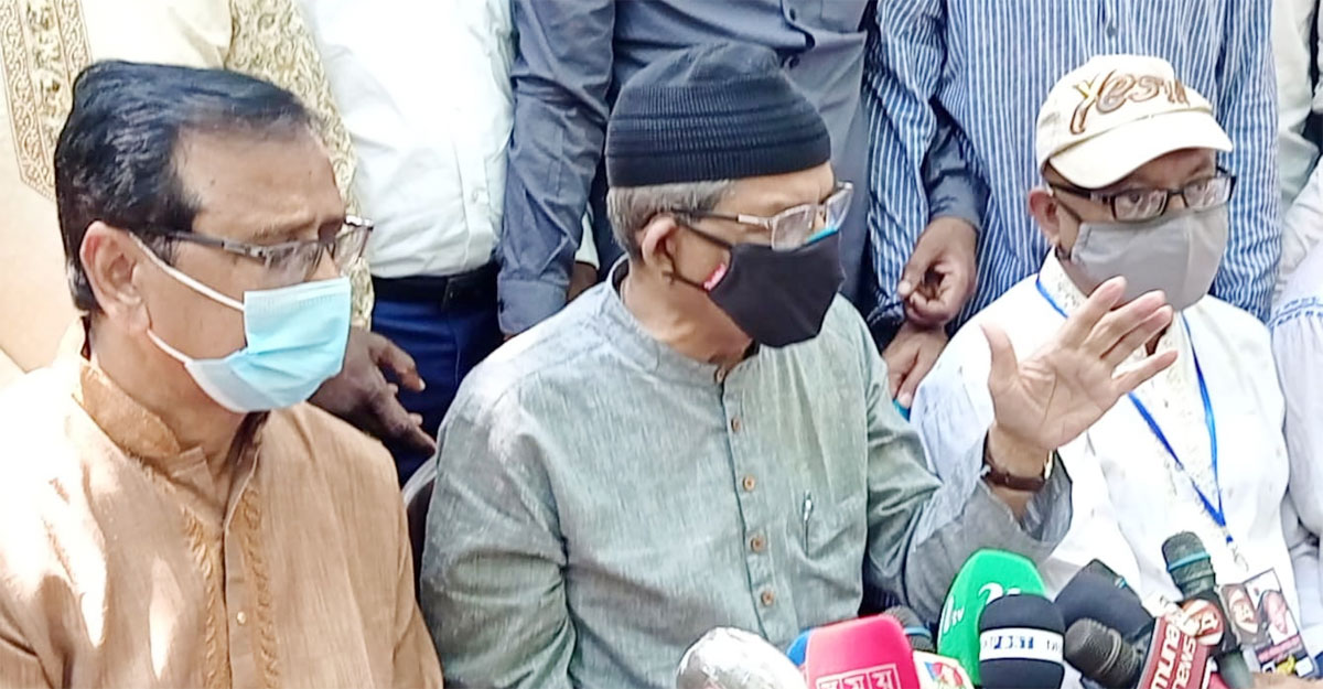 সাংবাদিকদের বক্তব্য দিচ্ছেন মির্জা ফখরুল ইসলাম আলমগীর