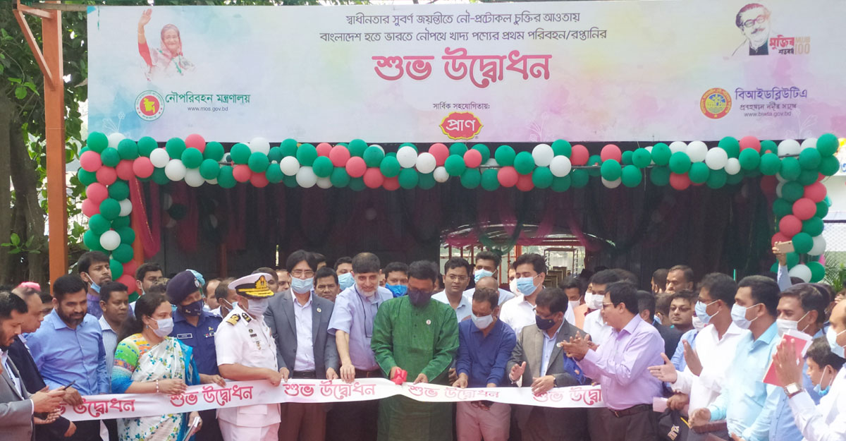 নরসিংদীর পলাশের প্রাণ-আরএফএল ফ্যাক্টরিতে বাংলাদেশ থেকে ভারতে নৌপথে খাদ্যপণ্যের প্রথম রফতানির শুভ উদ্বোধন