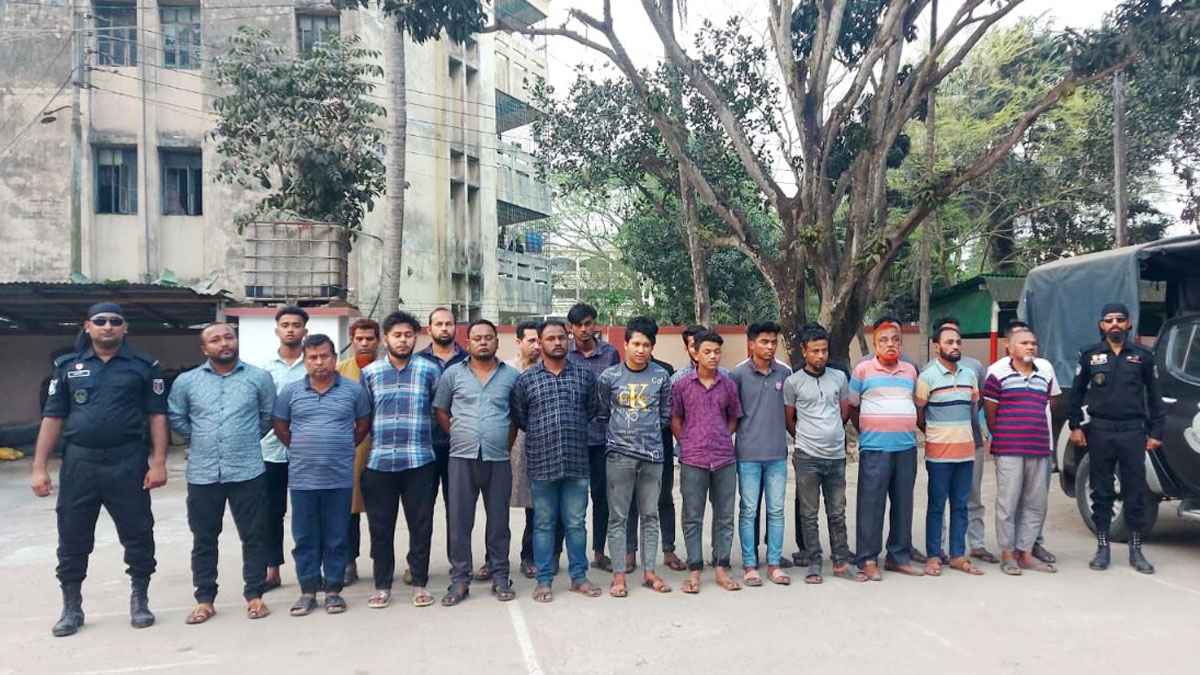 গ্রেপ্তারকৃতরা হলেন- কুমিল্লার সদর দক্ষিণ মডেল থানার শাকতলা গ্রামের সৈয়দ ফারুক আহম্মেদের ছেলে শাকিল আহম্মেদ সুজন (৩৮), কোতোয়ালি মডেল থানার বাগিচাগাঁও গ্রামের মো. দেলোয়ার হোসেনের ছেলে মো. শাহাদাত হোসেন (২৭), নোয়াপাড়া গ্রামের মৃত দুলু মিয়ার ছেলে মো. শরীফ (৩৪), মৃত সিরাজুল ইসলামের ছেলে মো. মাসুক (৫০), মো. আনিছুর রহমান সুমন খানের ছেলে মো. লিকন খান লিটন (২০), আলী হোসেনের ছেলে ডালিম সরকার (২০), মো. শওকতের ছেলে মো. ইরফান (২৮), মৃত আলী আশ্রাফের ছেলে মো. শওকত আলী (৫৪), কবির হোসেনের ছেলে মো. ওজায়ের হোসেন সাকিব (২০), নতুন চৌধুরী পাড়ার মৃত আব্দুর মোন্নাফের ছেলে মো. দেলোয়ার হোসেন রোমান (৫২), মুরাদনগর থানার কুরুইল গ্রামের আব্দুর রশিদের ছেলে আব্দুর রহিম (৩৭), কোতোয়ালি মডেল থানার মোরাপাড়া গ্রামের শাহিন মিয়ার ছেলে ইশান আহম্মেদ রাব্বি (২৩), চট্টগ্রামের স্নদ্বীপ থানার মগধারা গ্রামের মোতাচ্ছের আহম্মদের ছেলে মুজিবুর রহমান (২১), কুমিল্লার বুড়িচং থানার পীর যাত্রাপুর গ্রামের শাহিন মিয়ার ছেলে মো. সাইফুল ইসলাম (২০), কোতোয়ালি মডেল থানার মৃত মাঈন উদ্দিনের ছেলে মো. শাফি (২৯), মো. আজাহারের ছেলে মো. তুহিন (২০), খাগড়াছড়ির মাটিরাঙ্গা থানার ব্রিজপাড়া গ্রামের আবু তাহেরের ছেলে মো. রুহুল আমিন রুবেল (৩০), কুমিল্লার কোতোয়ালি মডেল থানার ছোটরা গ্রামের মৃত মোশারফ হোসেনের ছেলে মো. মাজহারুল ইসলাম (২১), বুড়িচং থানার পয়াত গ্রামের মৃত রুস্তম আলীর ছেলে আব্দুল হান্নান বাবুল (৫৩), আব্দুল হান্নানের ছেলে হাছিবুল হাসান জিমি (২৩), শিকারপুরের মো. তোফাজ্জল হোসেনের ছেলে তানজিদ হাসান (২৭), দেবিদ্বার থানার ওয়াহেদপুর গ্রামের মৃত রমিজ আহম্মেদের ছেলে মো. ইমরুল হাসান (৪০), বুড়িচং থানার পীর যাত্রাপুর গ্রামের মৃত আব্দুর কাদেরের ছেলে মো. আবুল কালাম আজাদ (৫৫) এবং কুমিল্লার কোতোয়ালি মডেল থানার কালিকাপুর গ্রামের মৃত আব্দুরের ছেলে মো. আব্দুল কাইয়ুম (৫২)।