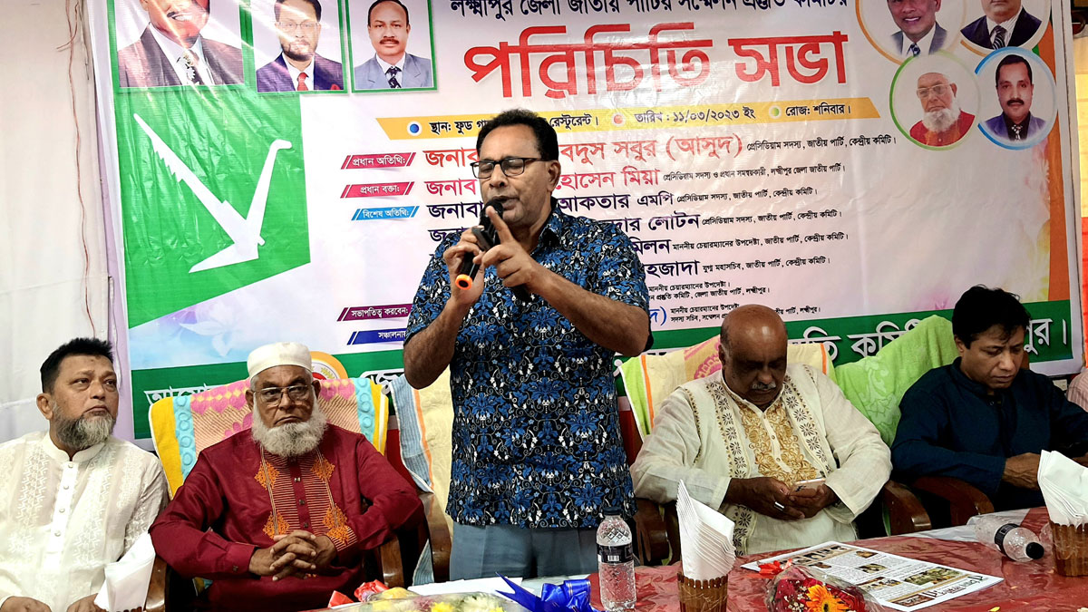 শনিবার (১১ মার্চ) দুপুরে লক্ষ্মীপুরে জাতীয় পার্টির সম্মেলন প্রস্তুতি কমিটির পরিচিতি সভায় প্রধান অতিথির বক্তব্যে তিনি এসব কথা বলেন। জেলা শহরের একটি চাইনিজ রেস্টুরেন্টে এ আয়োজন করা হয়।