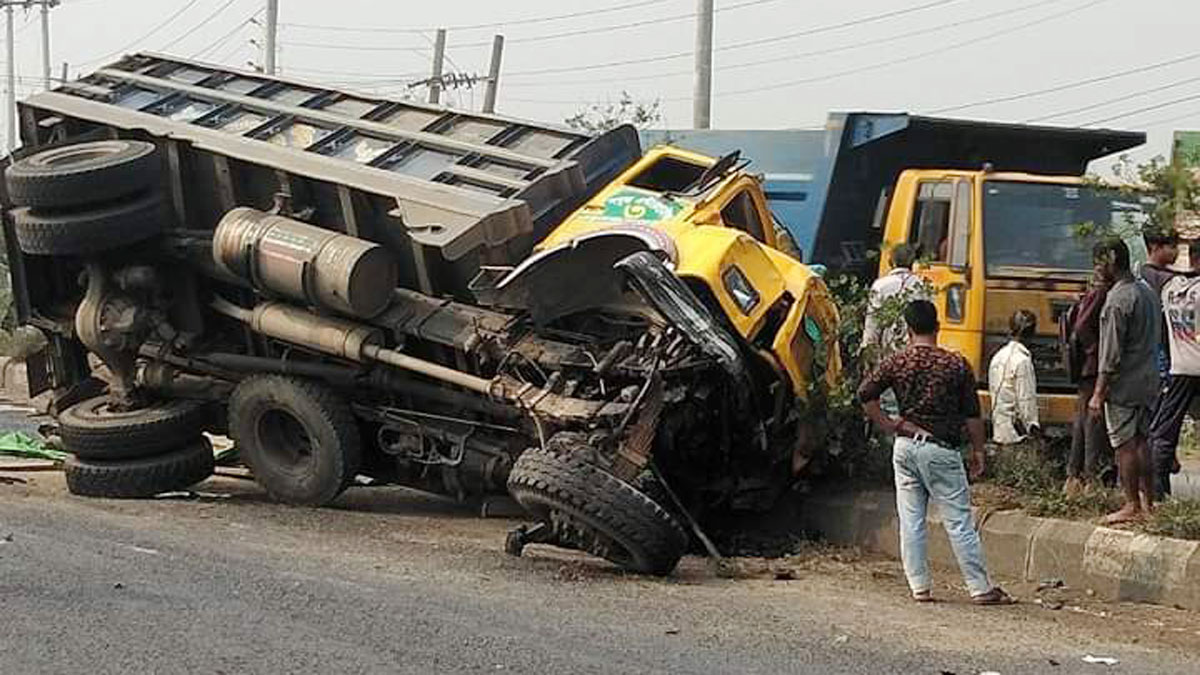 ত্রিশালে নিয়ন্ত্রণহীন ট্রাকের সঙ্গে বাসের সংঘর্ষ, আহত ১২