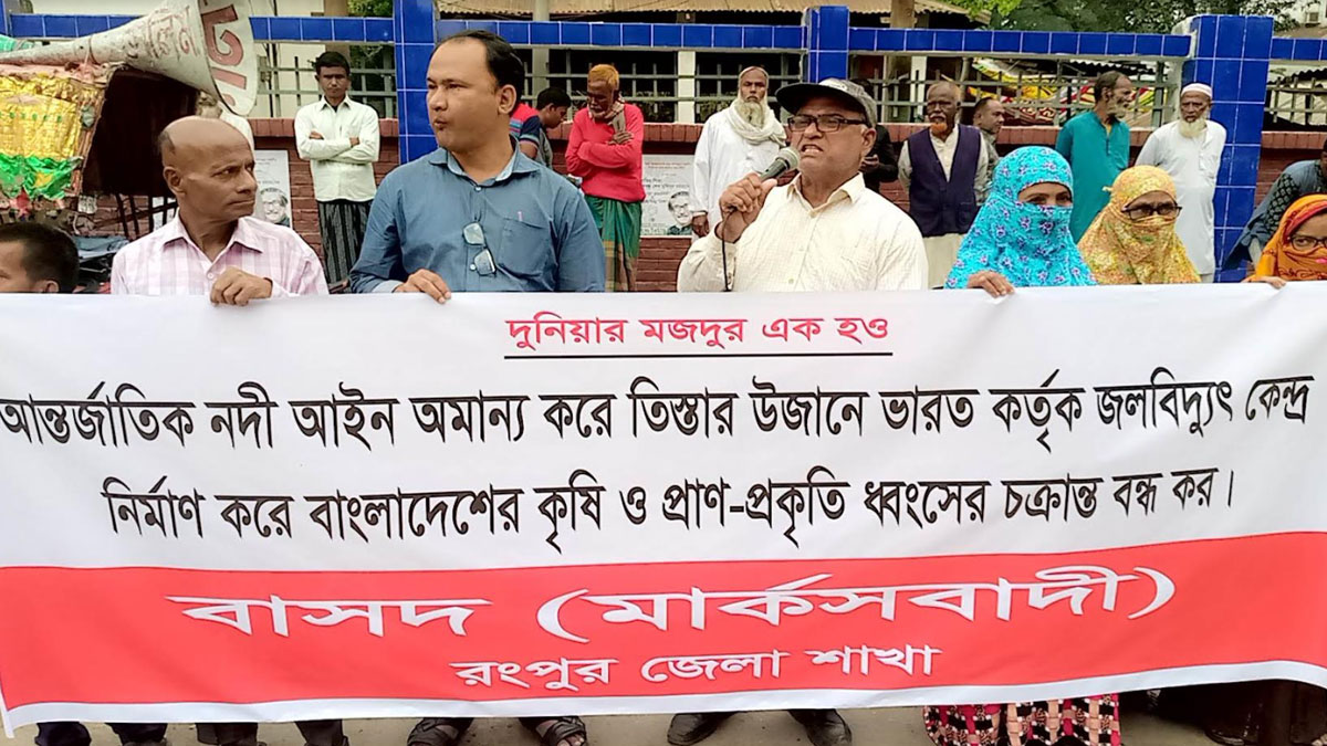 আন্তর্জাতিক নদী আইন অমান্য করে তিস্তার উজানে ভারতের জলবিদ্যুৎ কেন্দ্র নির্মাণের মাধ্যমে বাংলাদেশের কৃষি ও প্রাণ-প্রকৃতি ধ্বংসের ষড়যন্ত্রের প্রতিবাদে রংপুরে বিক্ষোভ মিছিল ও সমাবেশ করেছে বাসদ (মার্কসবাদী)।