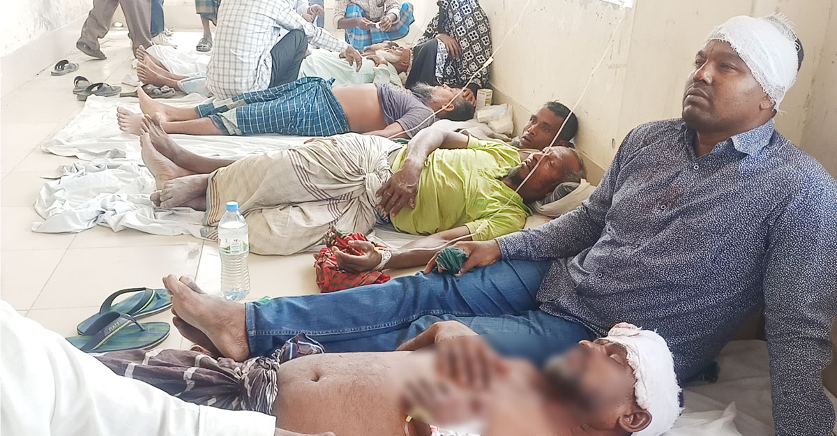 শরণখোলা উপজেলা স্বাস্থ্য কমপ্লেক্সে চিকিৎসা নিচ্ছেন আহতরা