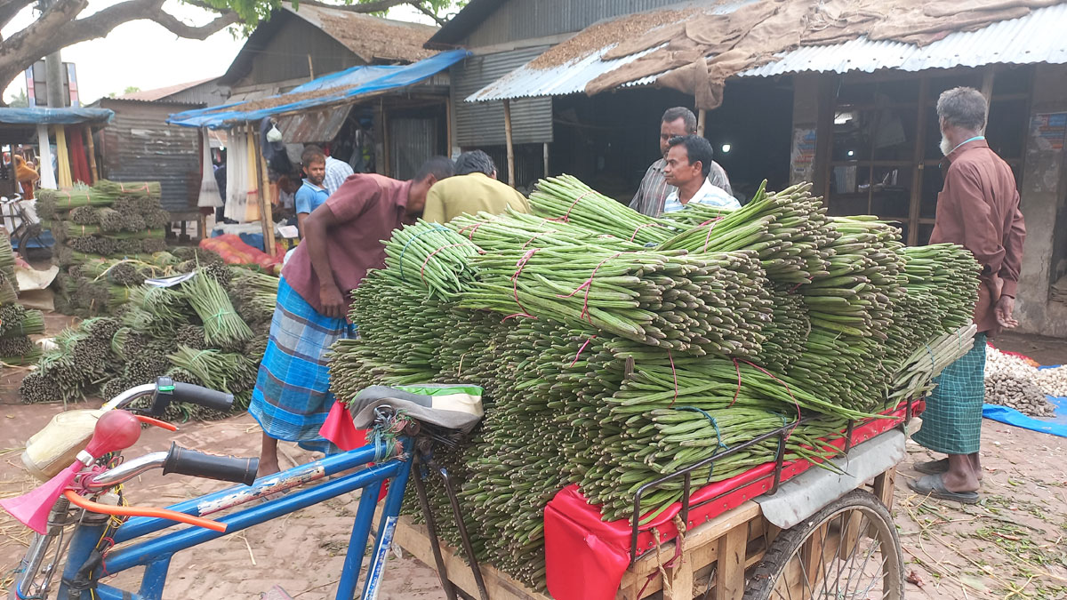 জেলা শহরের নতুনহাট বাজারে মৌসুমের প্রতিদিনই শজনের পাইকারি বাজার বসে। এই বাজারে গিয়ে দেখা গেছে, কৃষকরা বাইসাইকেল ও ব্যাটারিচালিত ভ্যানে করে শজনে ডাঁটা নিয়ে এসে বিক্রি করছেন।