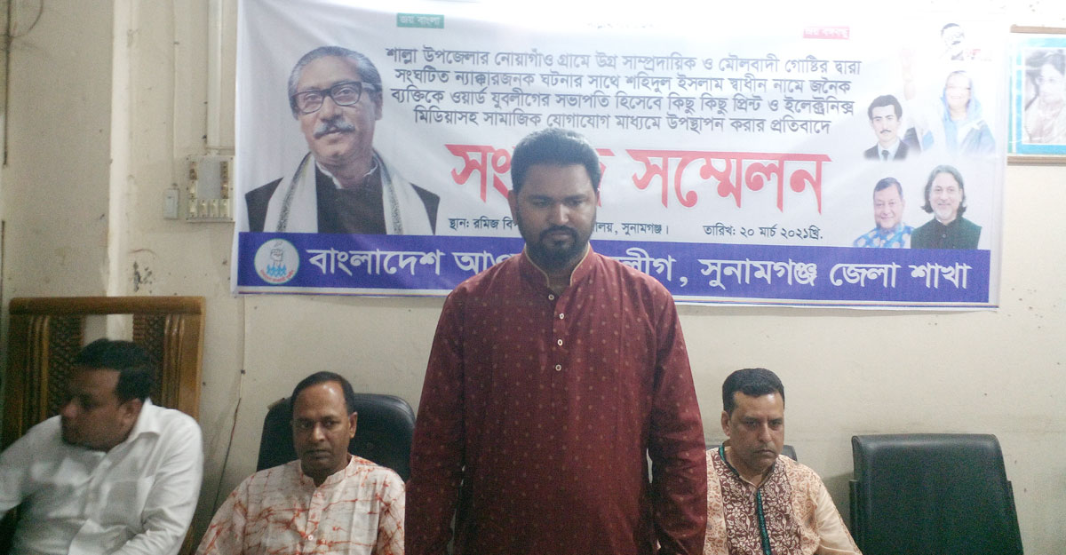 সুনামগঞ্জ জেলা যুবলীগের সংবাদ সম্মেলনে নেতৃবৃন্দ