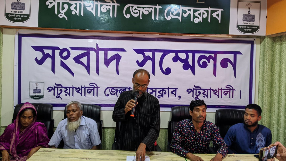 সংবাদ সম্মেলনে লিখিত বক্তব্যে ভুক্তভোগী আব্দুস সালাম দাবি করেন, বাউফল উপজেলার কাছিপাড়া ইউনিয়নের ছত্রকান্দা গ্রামের স্থায়ী বাসিন্দা মো. আ. কাদের মুন্সী, আ. রশিদ মৃধা, হাজী আবদুস সালাম, মো. শহিদ মুন্সি ও মোসা. হাছিনা বেগমসহ আরও ১৪ জনের ব্যক্তি মালিকানধীন কিছু জমি দখল করে সম্প্রতি সরকারের অবাসন প্রকল্প তৈরির কাজ শুরু হয়। এ সময় বিভিন্ন ফলজ ও বনজ গাছ কেটে বিক্রি করে দেয় উপজেলা প্রশাসন। যার আনুমানিক মূল্য পাঁচ লাখ টাকা।