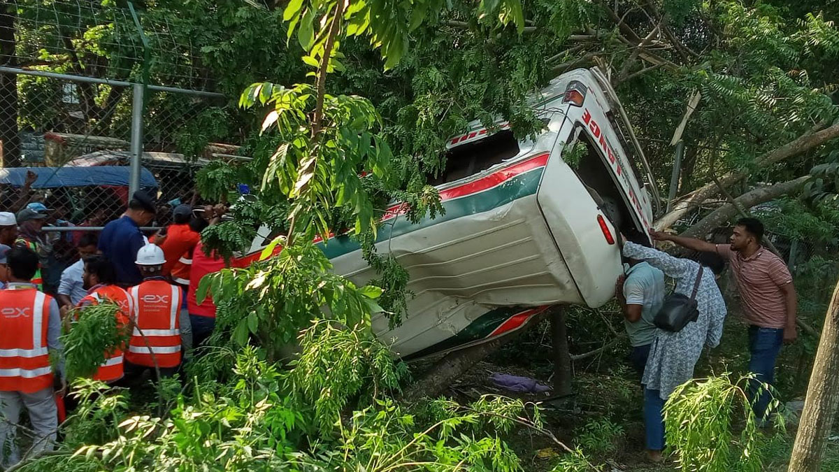 পদ্মা সেতুতে নিয়ন্ত্রণ হারিয়ে উল্টে গেল অ্যাম্বুলেন্স