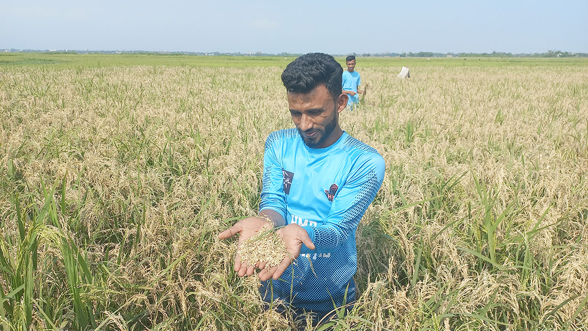 সুনামগঞ্জ সদর উপজেলার দেখার হাওরের কৃষক সন্তান সাহাব উদ্দিন। বয়োজ্যেষ্ঠ বাবাকে ঘরে রেখে ব্লাস্ট রোগে আক্রান্ত হওয়া নিজেদের জমির ধান দেখাতে এসেছেন তিনি। জমির সব ধান রোগে আক্রান্ত হয়ে নষ্ট হয়ে গেছে শুনলে কৃষক বাবা হার্ট অ্যাটাক করবেন বলে জানান তিনি। তাই এখনও বাবাকে জানতে দেননি শ্রম ঘামে ফলানো ধান এবার আর ঘরে তোলা হবে না।