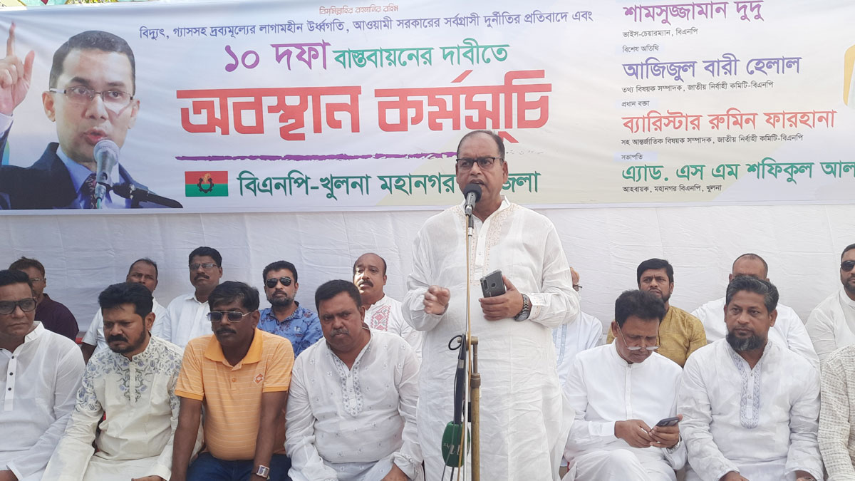 মঙ্গলবার (১১ এপ্রিল) বিকেলে খুলনা প্রেসক্লাবের ব্যাংকুয়েট হল চত্বরে অবস্থান কর্মসূচিতে প্রধান অতিথির বক্তব্যে তিনি এসব কথা বলেন। ১০ দফা দাবিতে খুলনা মহানগর ও জেলা বিএনপি এ কর্মসূচির আয়োজন করে।