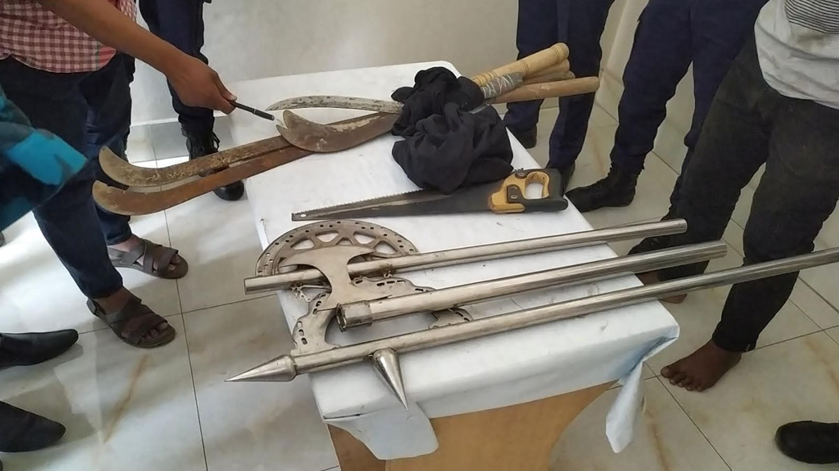 পুলিশ সোমবার ভোরে ওই এলাকায় তল্লাশি করে ডাকাতির জন্য ব্যবহৃত ভারতীয় জনপ্রিয় সিনেমা বাহুবলীর নায়কের অস্ত্রের মতো দেখতে স্টিলের ৩টি কুড়াল, দুটি বড় রামদা, দুটি দা, একটি বড় আকৃতির ছুড়ি, একটি করাত জব্দ করে।