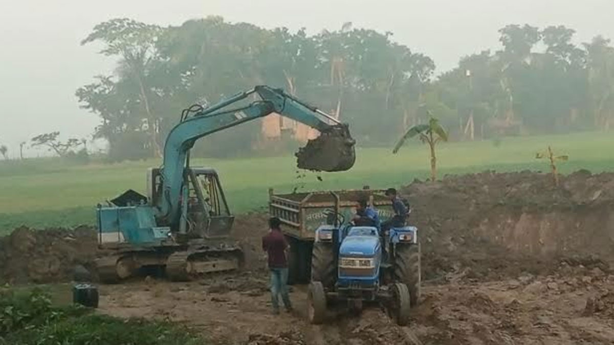 রাতের আঁধারে ফসলি জমির মাটি যাচ্ছে ইটভাটায়