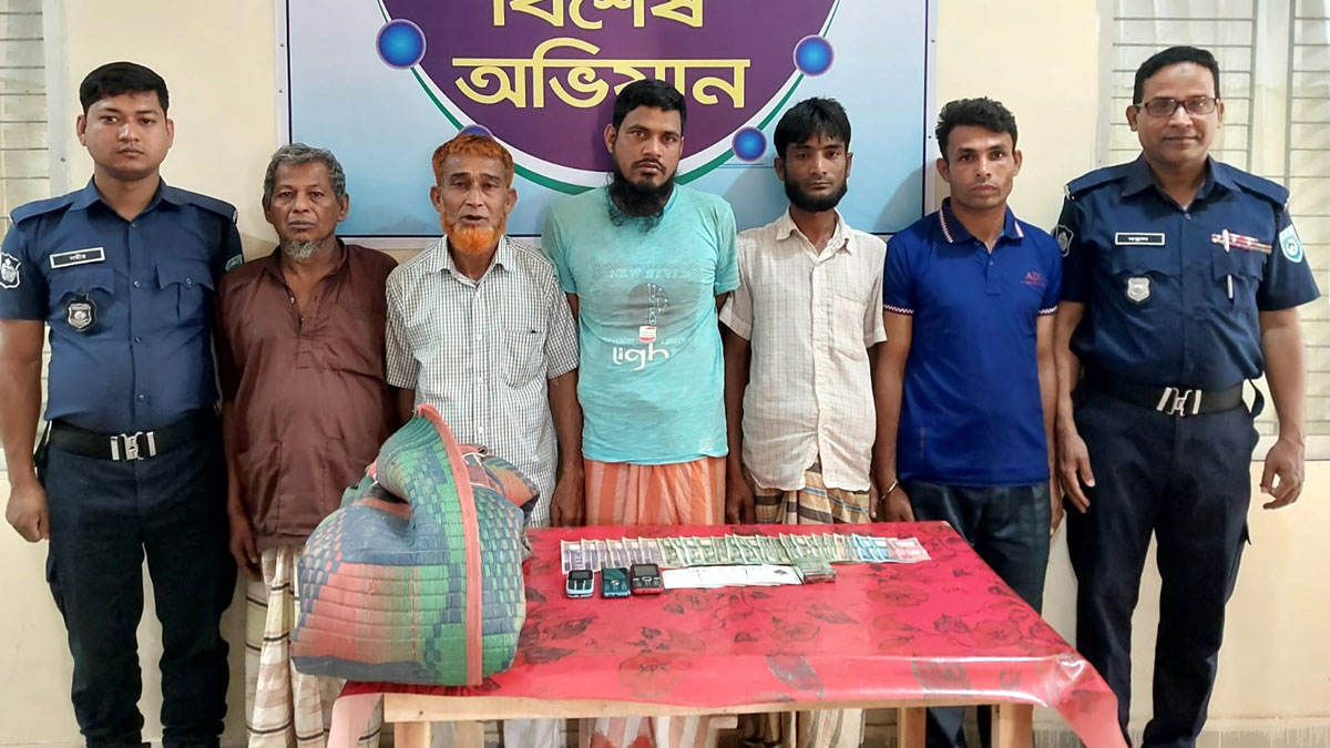 আটককৃতরা হলেন- কিশোরগঞ্জ উপজেলার গাড়াগ্রাম ইউনিয়নের ৭নং ওয়ার্ডের ইউপি সদস্য ও টেপারহাট মাস্টার পাড়া এলাকার মৃত আবু তালেবের ছেলে জাকারুল ইসলাম (৬০), রনচন্ডি ইউনিয়নের বদি মাঝাপাড়া এলাকার মৃত আকবর হোসেনের ছেলে আরকান (৩৫), মৃত ইয়াসিন আলীর ছেলে বাবু মিয়া (২৭), হুজুর আলীর ছেলে মাহবুবুল ইসলাম (২৮) ও রংপুরের গঙ্গাচড়ার খামার মোহনা এলাকার একরামুল হক (৫২)।