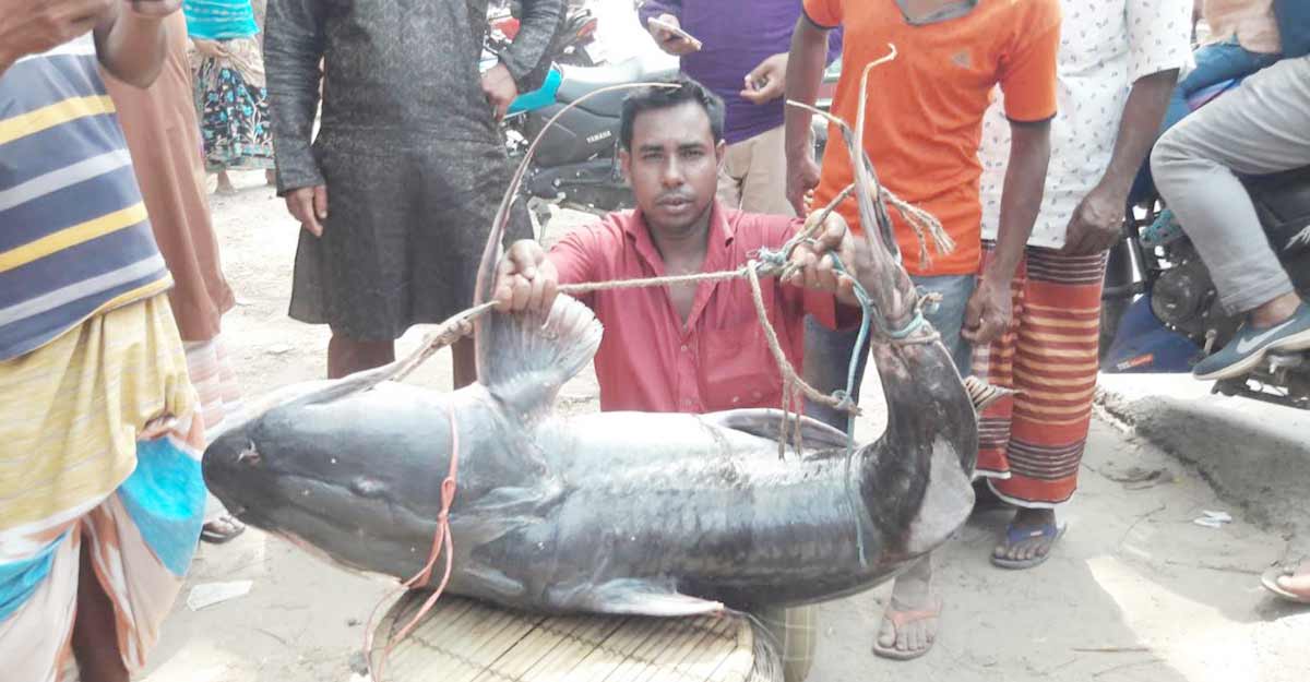 ব্রহ্মপুত্রে জেলের জালে ৪১ কেজির বাঘাইড়