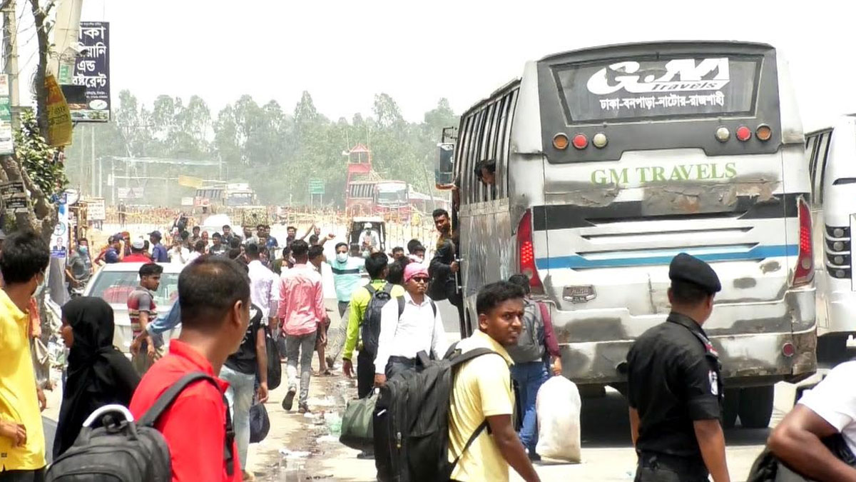যাত্রীরা জানান, সড়কে বাস খুবই কম। যাও পাওয়া যাচ্ছে খালি সিট পাওয়া যায় না। বাড়তি টাকা দিয়ে দাঁড়িয়ে যেতে হচ্ছে। এছাড়া অনেকেই কম টাকায় এই তপ্ত রোদে খোলা পিকআপে করে বাড়ি ফিরছেন।