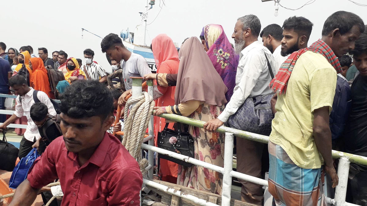 শেষ মুহূর্তে দৌলতদিয়া লঞ্চ ঘাটে ঘরমুখো মানুষের ভিড়