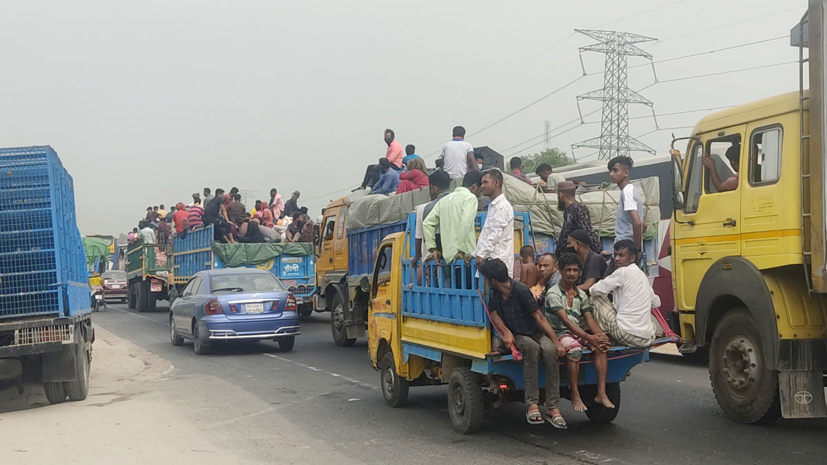 মহাসড়কে উত্তরবঙ্গগামী যাত্রীবাহী বাসের চেয়ে খোলা পিকআপ, ট্রাক ও ব্যক্তিগত গাড়ি বেশি রয়েছে। মানুষ বাস না পেয়ে প্রচন্ড রোদ ও গরমের মধ্যে খোলা পিকআপ ও ট্রাকে বাড়ি যাচ্ছে। এতে অনেকেই অসুস্থ্য হয়ে যাচ্ছে। এছাড়াও জীবনের ঝুঁকি নিয়ে মানুষজন খালি মুরগির গাড়ির খাঁচার ওপর বসেও যাচ্ছে বাড়ি।
