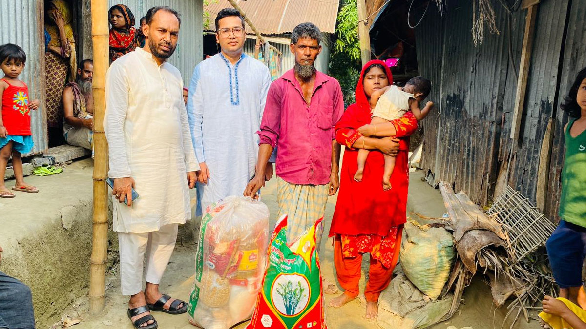 খাদ্য সামগ্রী নিয়ে অসহায় সেই পরিবারের পাশে এমপিপুত্র