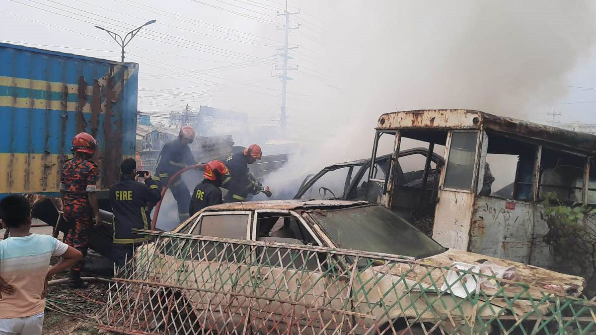 আশুলিয়া থানার জব্দকৃত গাড়ির স্তুপে আগুন
