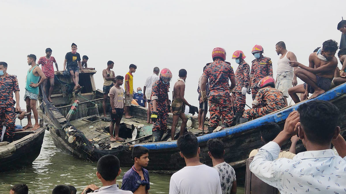 রোববার (২৩ এপ্রিল) দুপুরে একটি ট্রলার ভেসে আসার পর মরদেহ দেখে পুলিশকে জানান স্থানীয় জেলেরা। পরে ফায়ার সার্ভিস ও পুলিশ গিয়ে মরদেহগুলো উদ্ধার করে।