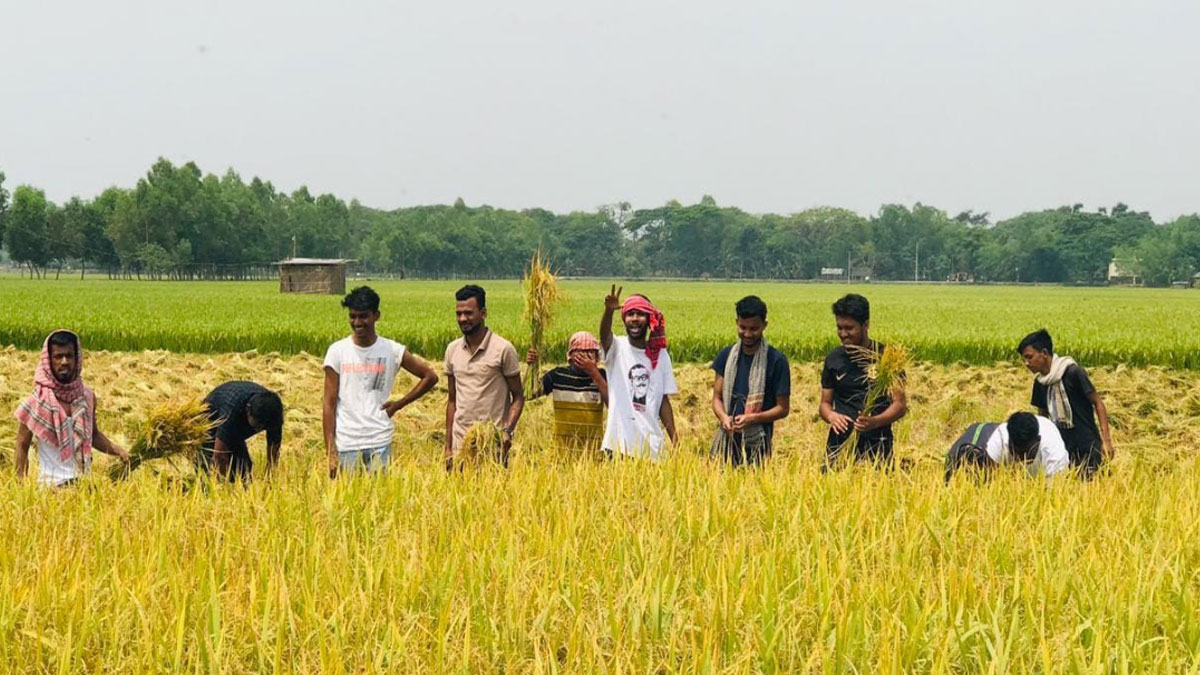 ধান কেটে বাড়িতে পৌঁছে দিল ছাত্রলীগ, কৃষকের মুখে হাসি